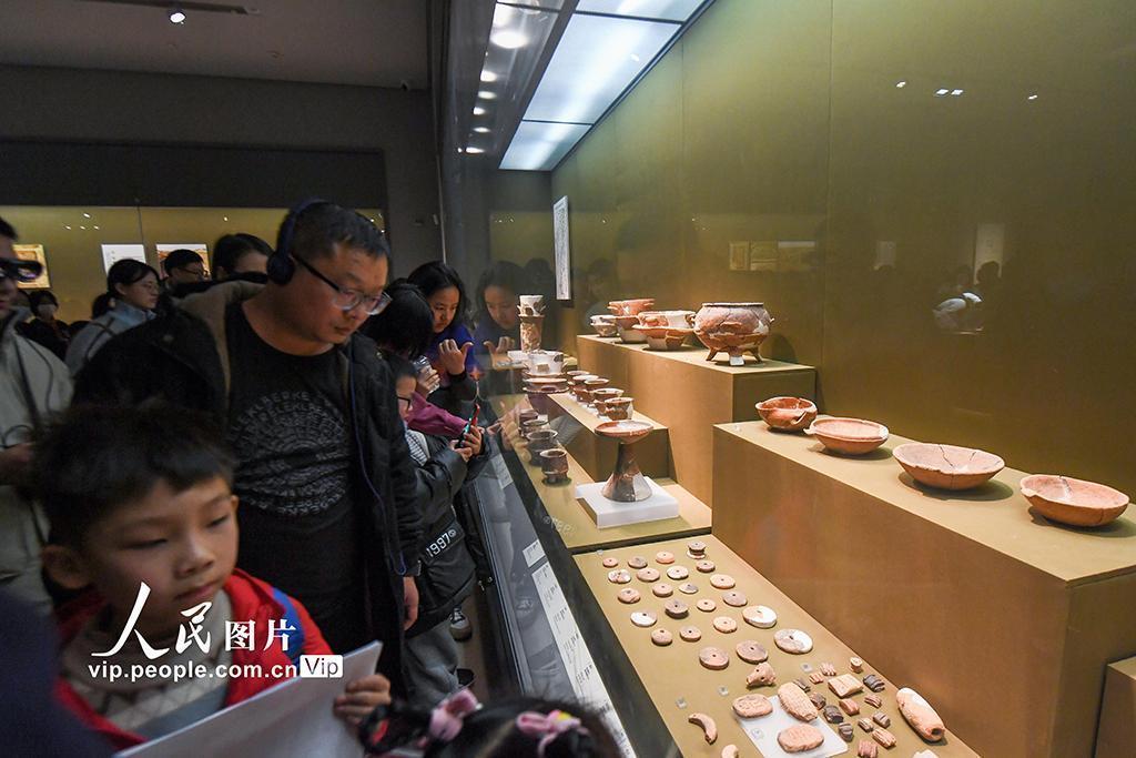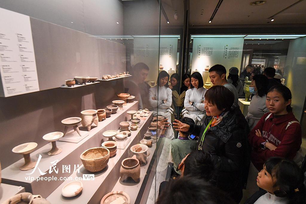 寒假期间,众多中小学生在家人陪同下,来到南京博物院,近距离观赏展出文物、感受文化魅力,乐享寒假生活。杨素平摄(人民图片网)
